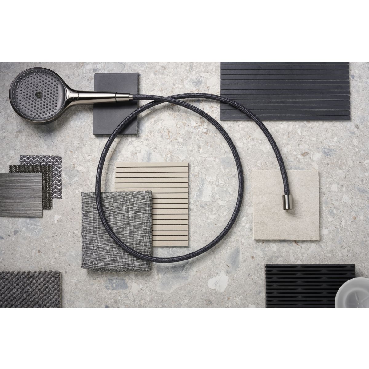 Designflex ist eine Duschschlauch, der durch seine angenehm anzufassende textile Oberflächenstruktur besticht. Das Geheimnis dieser Duschschlauch liegt in dem wasserfesten und wasserabweisenden Material, das aus recycelten PET-Flaschen hergestellt wird. Die bunten Fasern sind miteinander verflochten und ergeben ein schimmerndes Muster und ein einzigartiges Aussehen. Außerdem ist Designflex 30 % leichter als die Standard-Duschschläuche von Hansgrohe. Der Schlauch ist bruchsicher und verdrehsicher. Wichtig ist, dass er universell einsetzbar und mit allen gängigen Duschköpfen kompatibel ist und sicher in der Spülmaschine gereinigt werden kann.