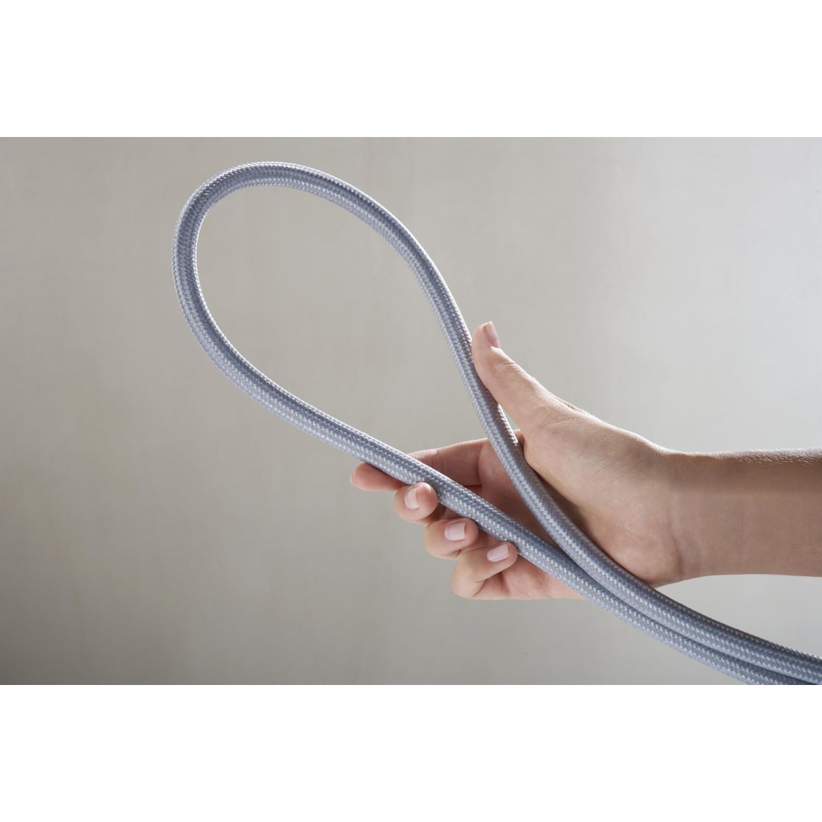 Designflex ist eine Duschschlauch, der durch seine angenehm anzufassende textile Oberflächenstruktur besticht. Das Geheimnis dieser Duschschlauch liegt in dem wasserfesten und wasserabweisenden Material, das aus recycelten PET-Flaschen hergestellt wird. Die bunten Fasern sind miteinander verflochten und ergeben ein schimmerndes Muster und ein einzigartiges Aussehen. Außerdem ist Designflex 30 % leichter als die Standard-Duschschläuche von Hansgrohe.