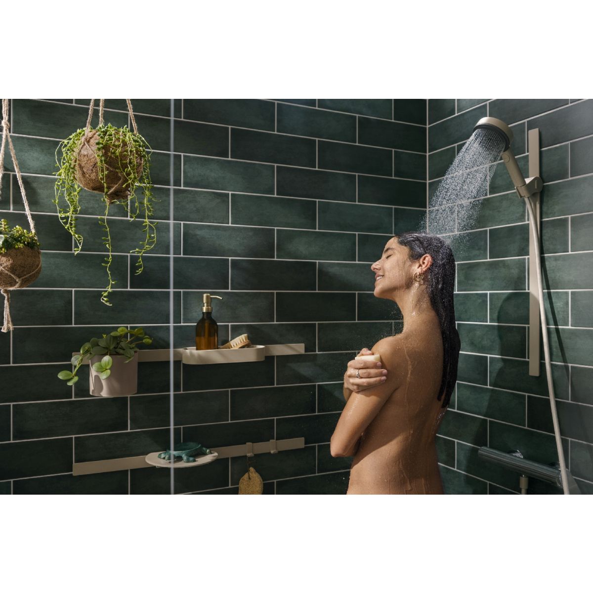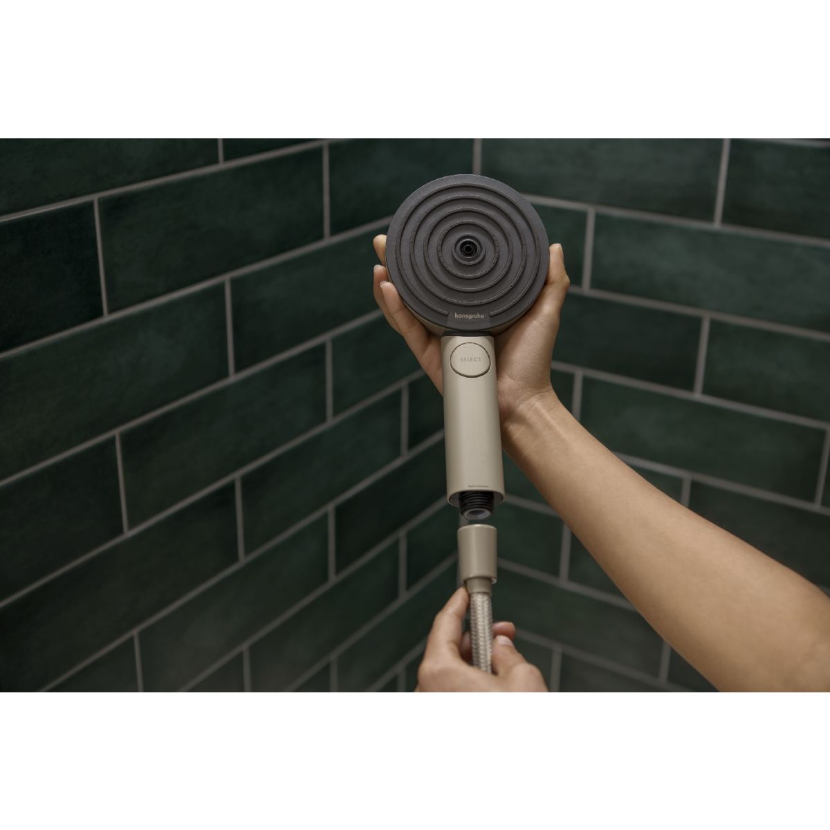 Designflex ist eine Duschschlauch, der durch seine angenehm anzufassende textile Oberflächenstruktur besticht. Das Geheimnis dieser Brauseschlauch liegt in dem wasserfesten und wasserabweisenden Material, das aus recycelten PET-Flaschen hergestellt wird. Die bunten Fasern sind miteinander verflochten und ergeben ein schimmerndes Muster und ein einzigartiges Aussehen. Außerdem ist Designflex 30 % leichter als die Standard-Brauseschläuche von hansgrohe.