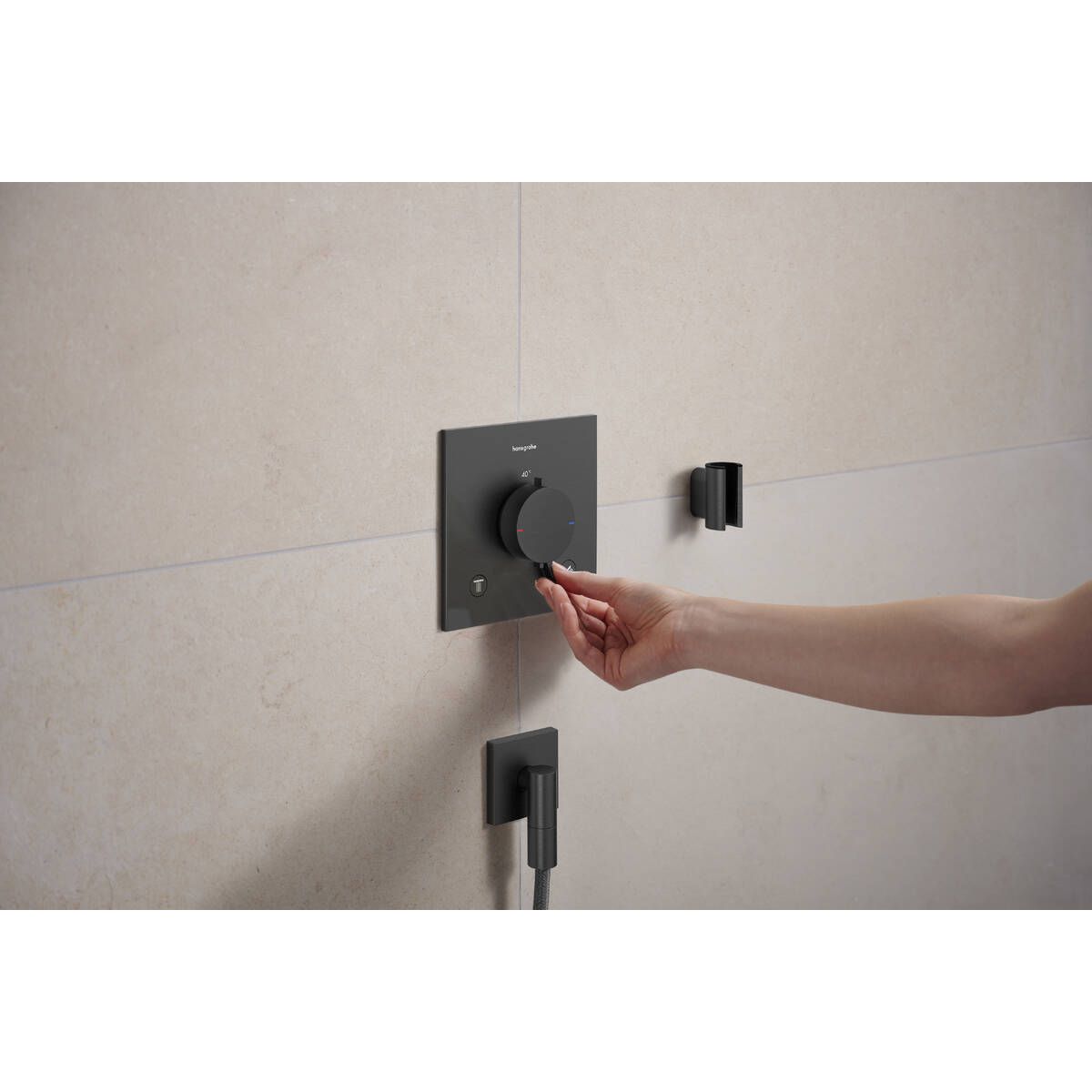 - Gewünschte Temperatur: Die Thermostatarmatur von hansgrohe hält die eingestellte Temperatur jederzeit zuverlässig aufrecht und reguliert sie bei Bedarf automatisch