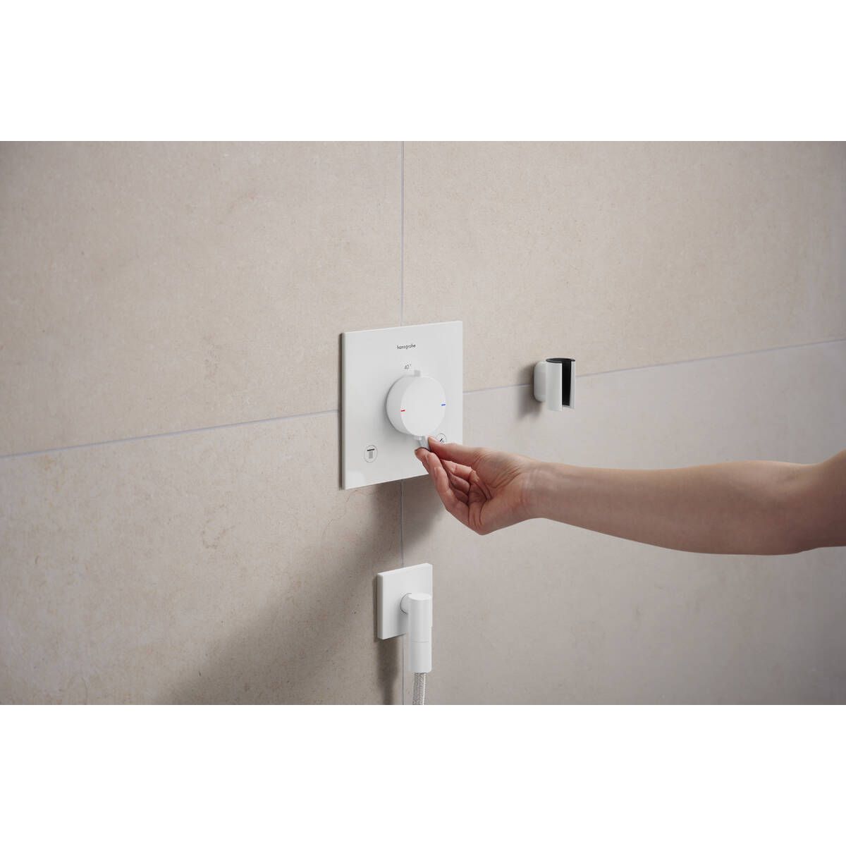 - Gewünschte Temperatur: Die Thermostatarmatur von hansgrohe hält die eingestellte Temperatur jederzeit zuverlässig aufrecht und reguliert sie bei Bedarf automatisch.
