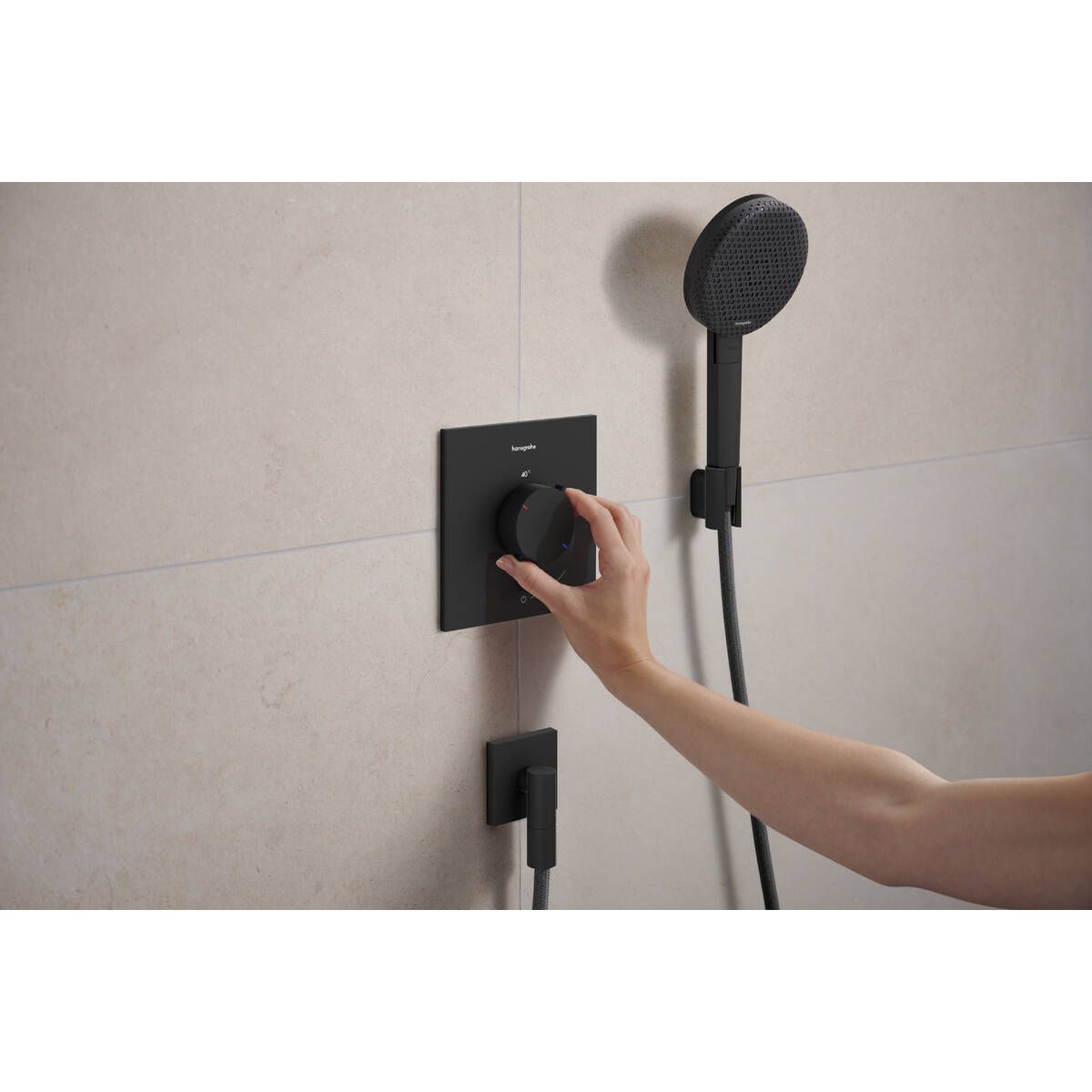 - Gewünschte Temperatur: Die Thermostatarmatur von hansgrohe hält die eingestellte Temperatur jederzeit zuverlässig aufrecht und reguliert sie bei Bedarf automatisch.