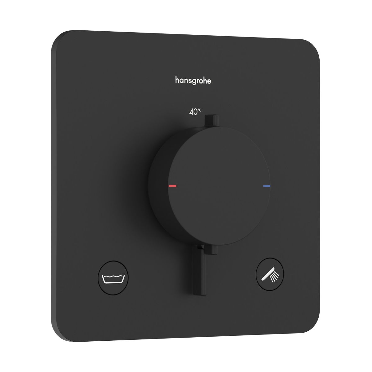 - Gewünschte Temperatur: Die Thermostatarmatur von hansgrohe hält die eingestellte Temperatur jederzeit zuverlässig aufrecht und reguliert sie bei Bedarf automatisch.