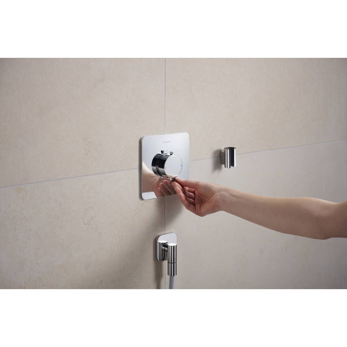 - Gewünschte Temperatur: Die Thermostatarmatur von hansgrohe hält die eingestellte Temperatur jederzeit zuverlässig aufrecht und reguliert sie bei Bedarf automatisch.
