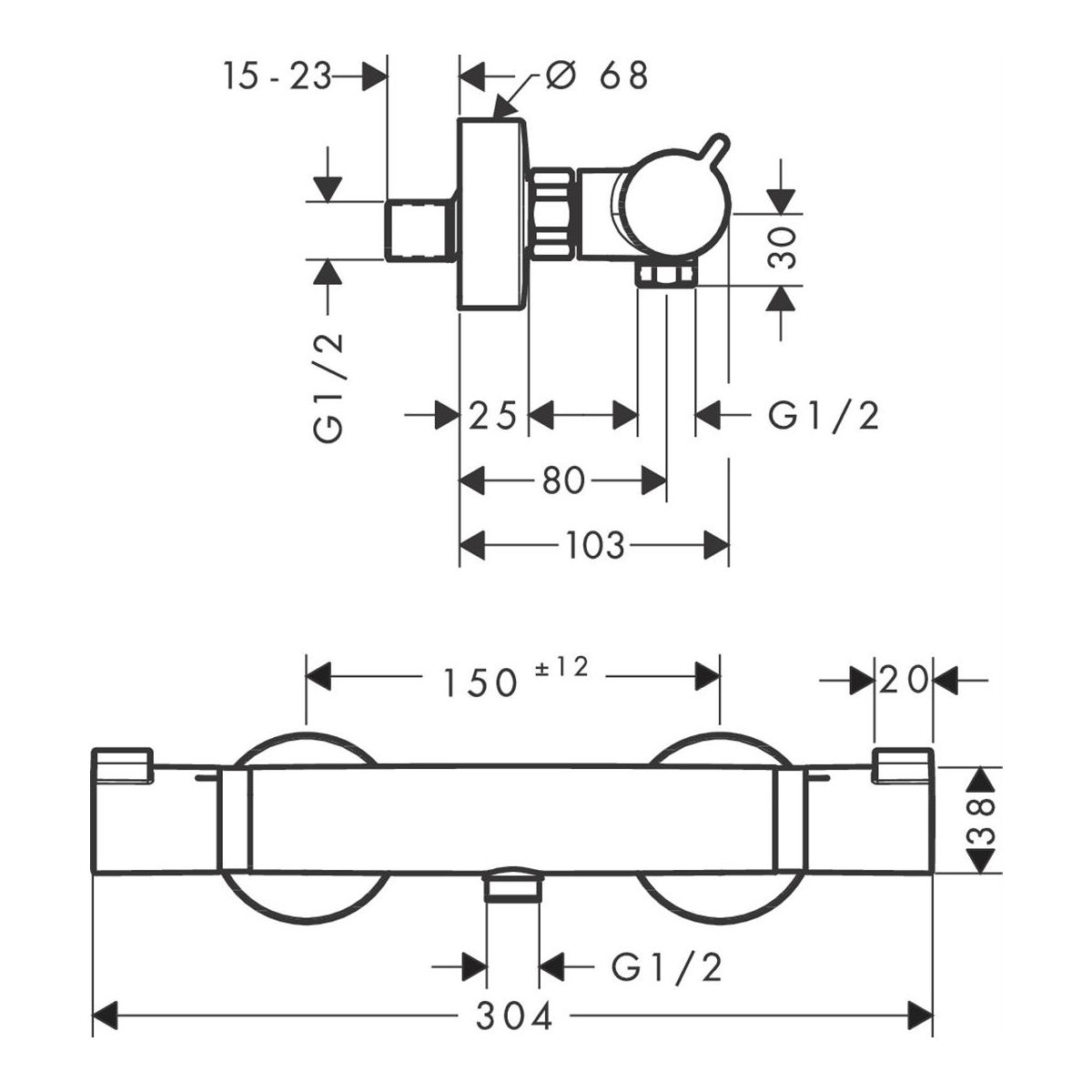 Hansgrohe Ecostat Duschbatterie Wandmontage mit Thermostat weiß 13116700