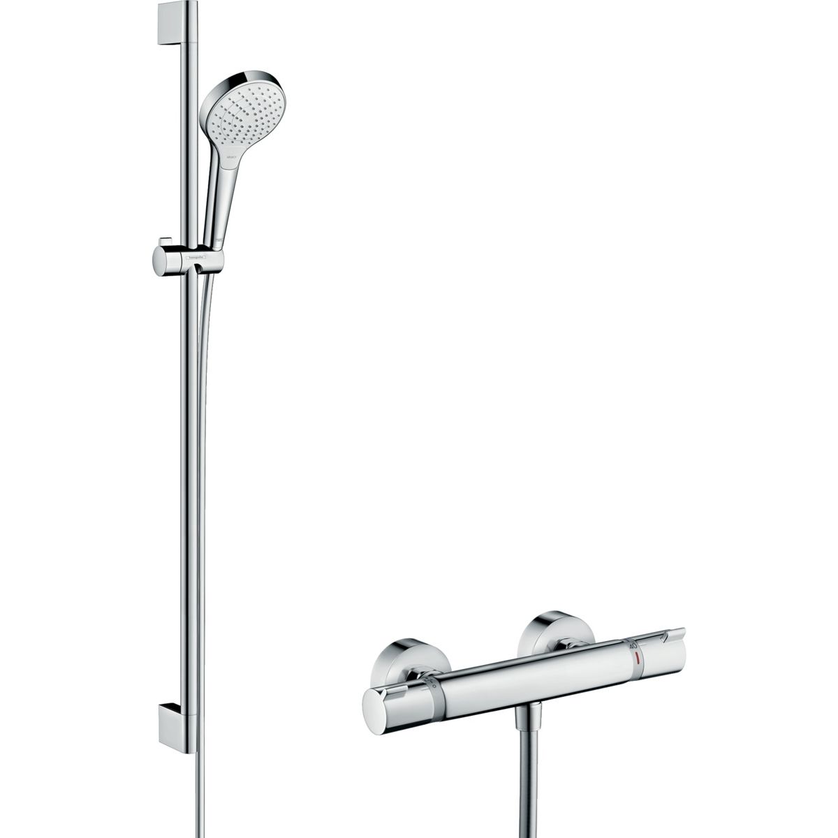 Hansgrohe Ecostat Duschset Wandmontage mit Thermostat chrom-weiß 27014400