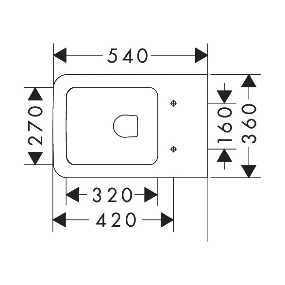 - Abstand der Befestigungen des WC-Sitzes: 160 mm