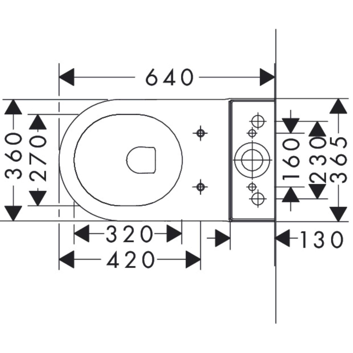 - Befestigungsabstand des WC-Sitzes: 160 mm