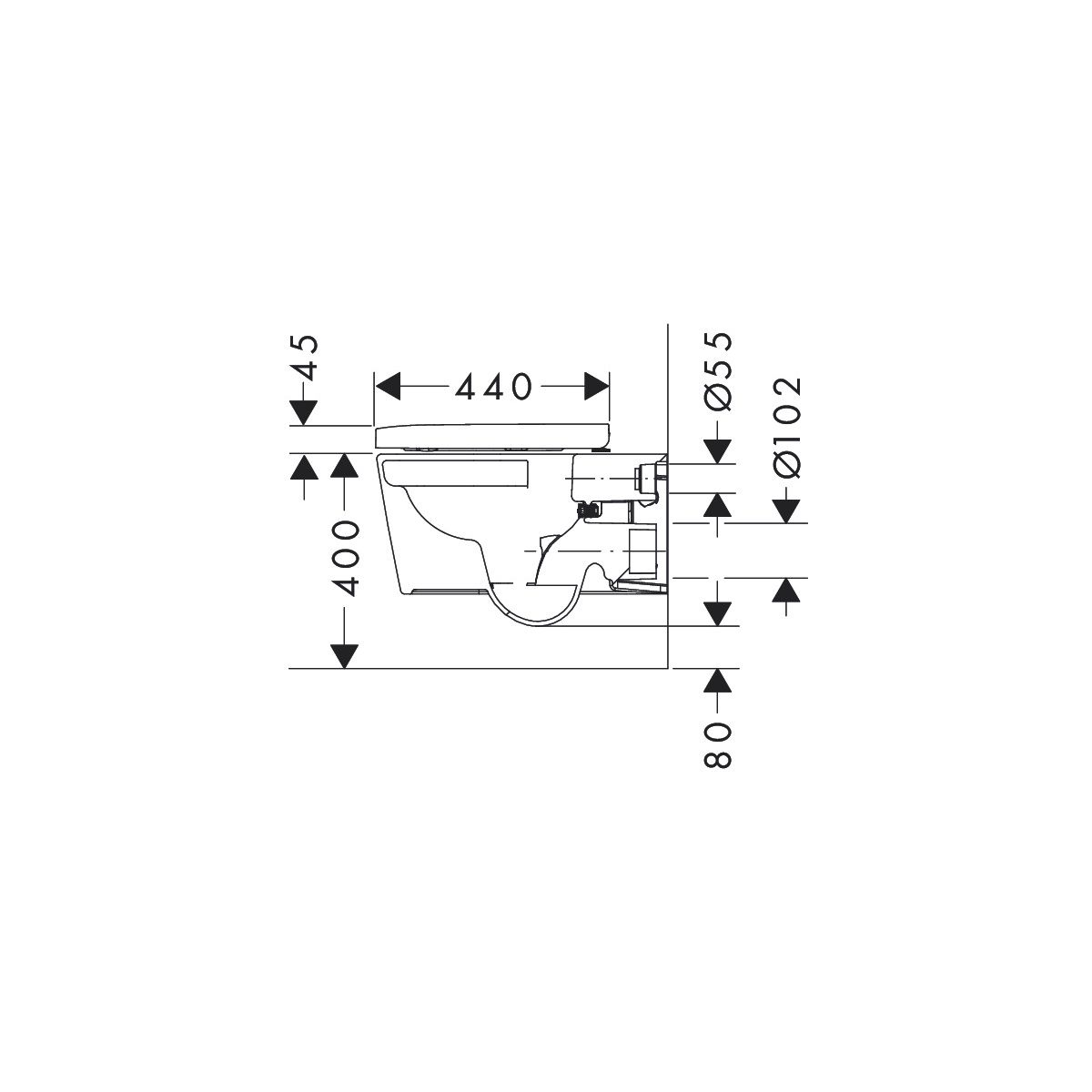 - Abstand der Befestigungen für den WC-Sitz: 160 mm