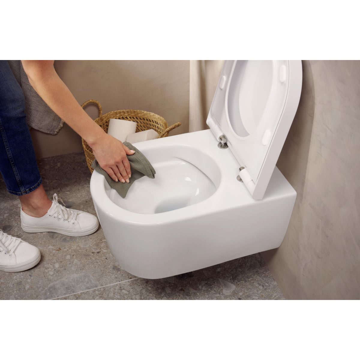 Das universelle Design der flanschlosen Toilette EluPura passt perfekt zum Stil Ihres Badezimmers.