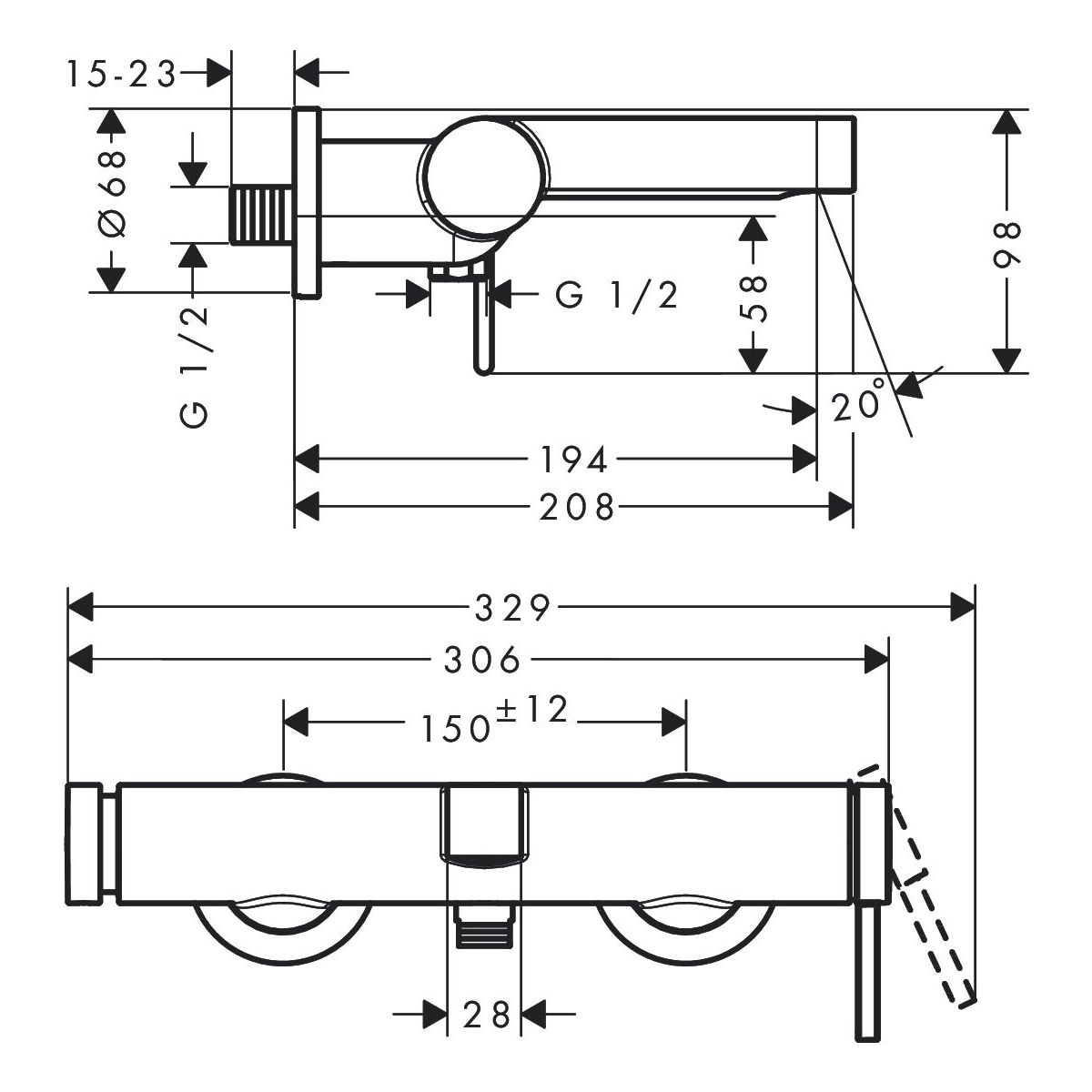 - Abstand: 150 mm ± 12 mm