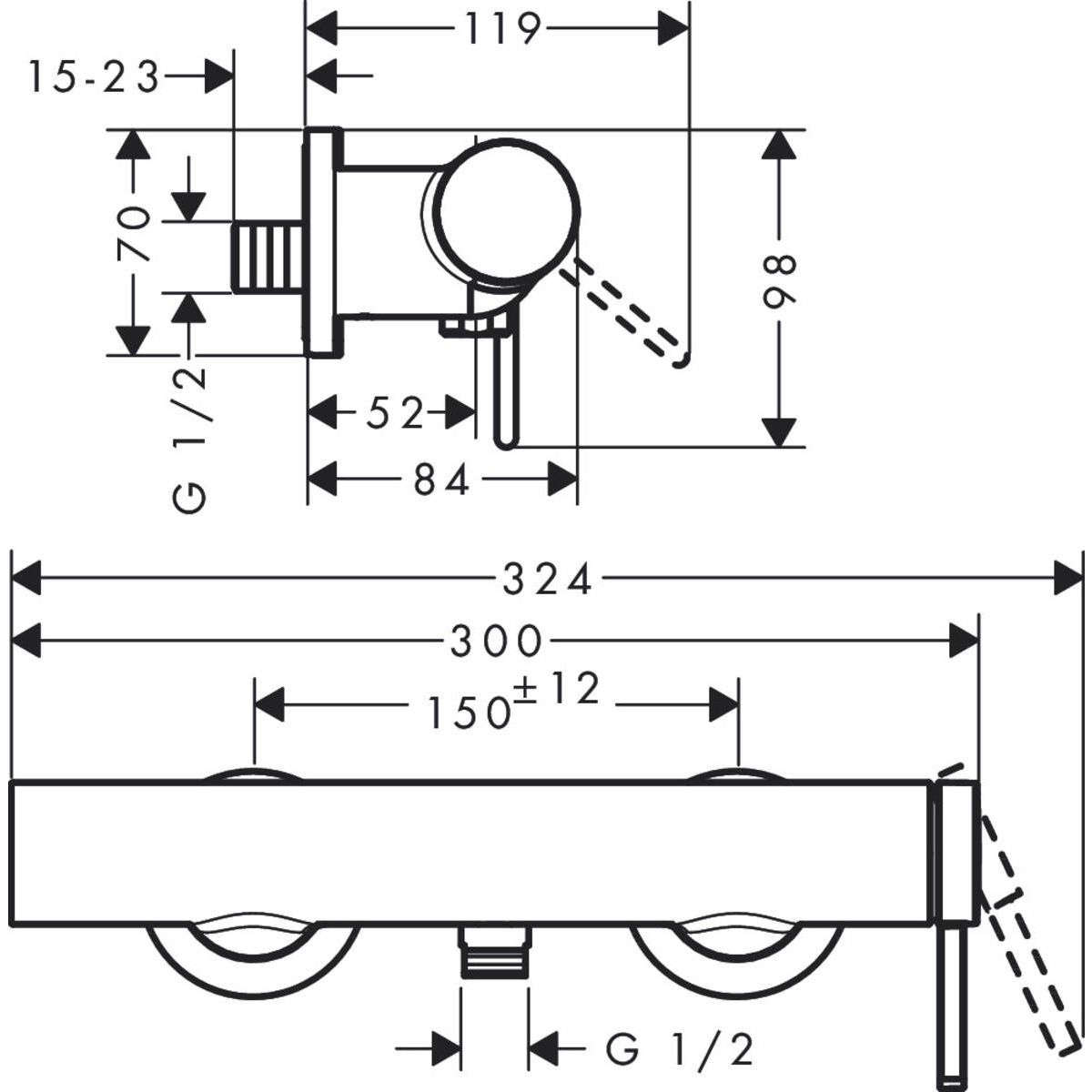 - Abstand: 150 mm ± 12 mm