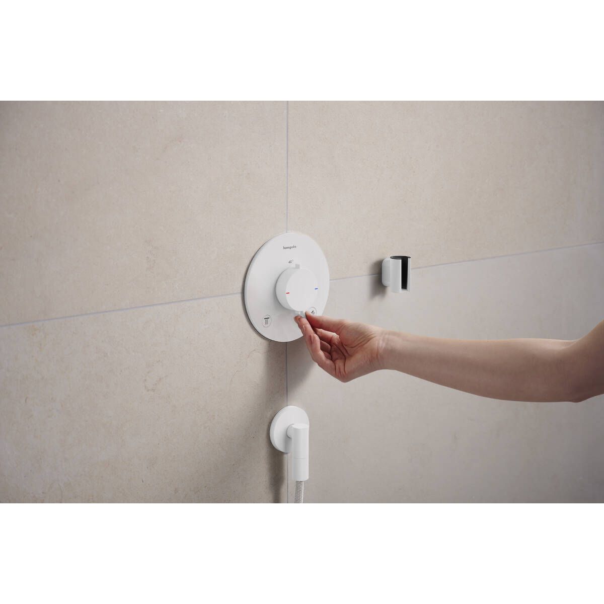 - Die runde, präzise gefertigte Wandrosette passt perfekt zu hansgrohe Armaturen mit rundem Design (S).