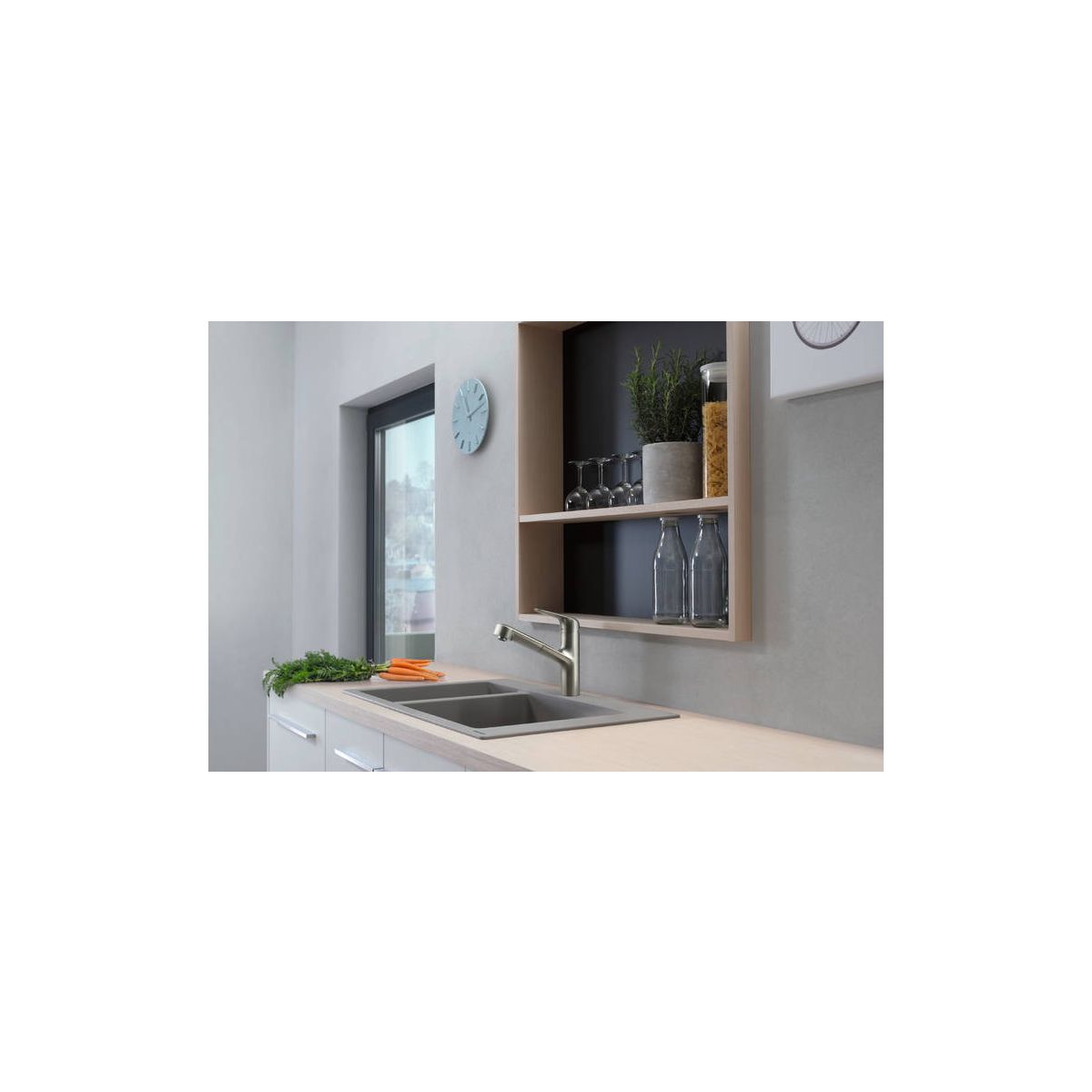 - QuickClean – einfache Kalkentfernung: Am Perlator der Armatur und an den Duschdüsen befinden sich Silikonnoppen