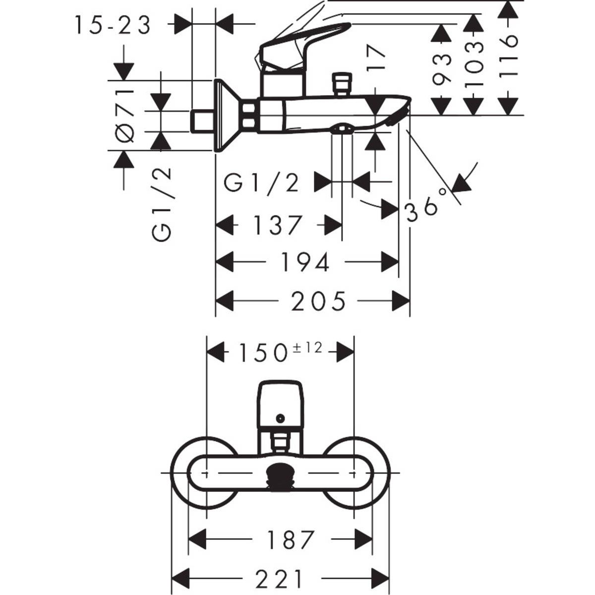 Hansgrohe Logis Badewannen- und Duscharmatur Wandmontage chrom 71401000