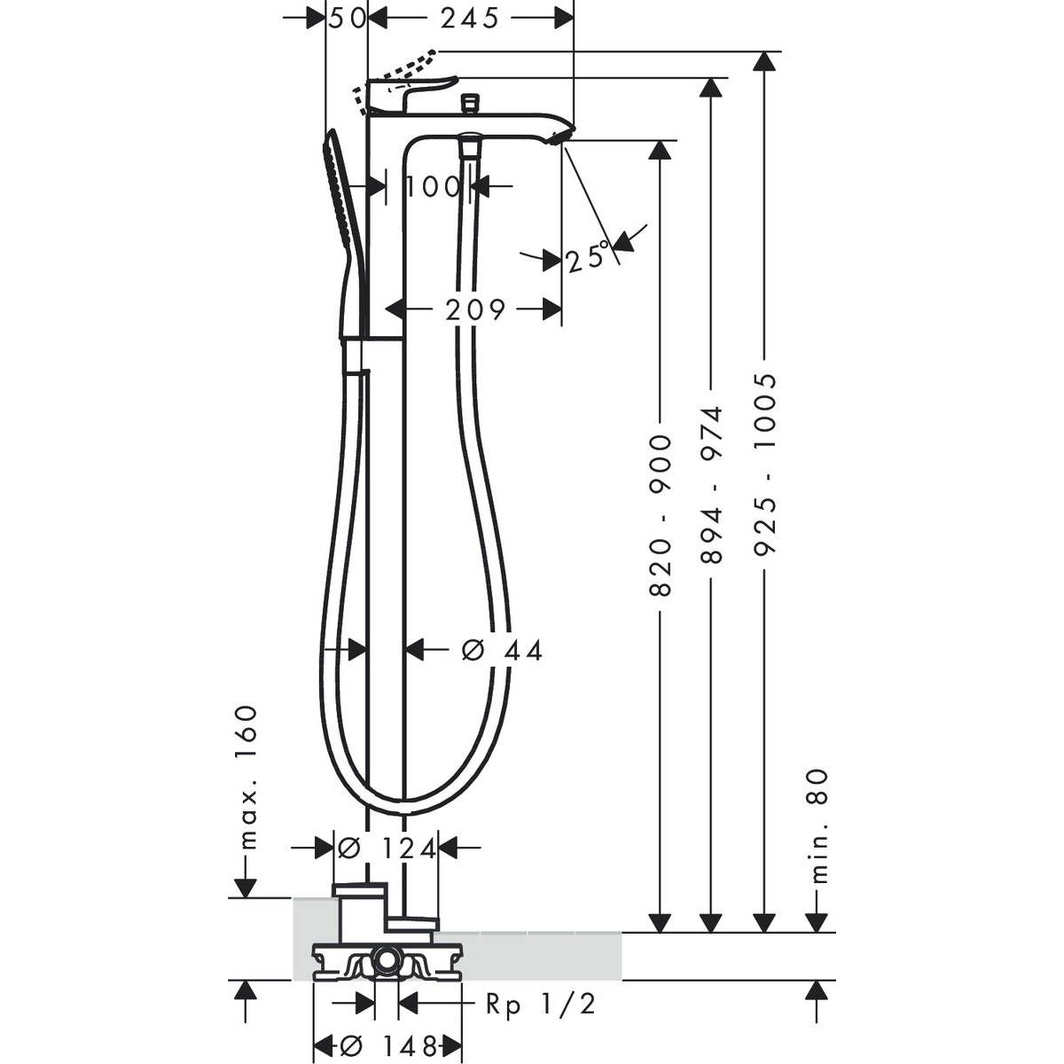 Hansgrohe Metris Badewannen- und Duscharmatur freistehend chrom 31471000