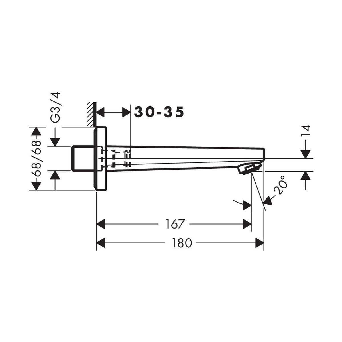 Hansgrohe Metropol Auslauf für Badewannenarmatur für Badewanne chrom 32542000