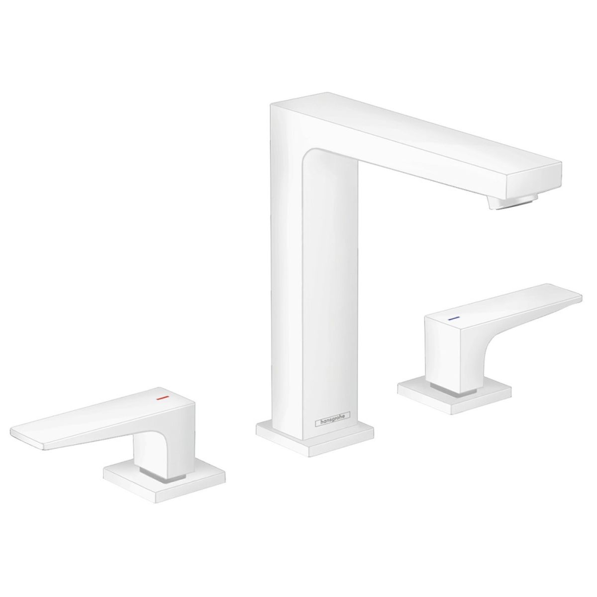 Die 3-Loch-Waschtischarmatur Metropol 160 mit Einhebelgriffen und Push-Open-Ablaufgarnitur in mattweiß von hansgrohe präsentiert sich stilvoll auf dem Waschtisch. Diese elegante Armatur mit klassischer Zweigriffbedienung besticht durch ihr geometrisches Design, während die hochwertige mattweiße Oberfläche ihr einen besonders faszinierenden Charakter verleiht. Große Flächen und präzise Formen machen diese Armatur zu einem modernen Design-Manifest. Das ausdrucksstarke Mattweiß der Waschtischarmatur passt besonders gut zu einem modernen Badezimmer. Ein weiterer Vorteil: Der große Abstand zwischen Auslauf und Waschtisch sorgt für mehr Platz und Komfort (ComfortZone 160).