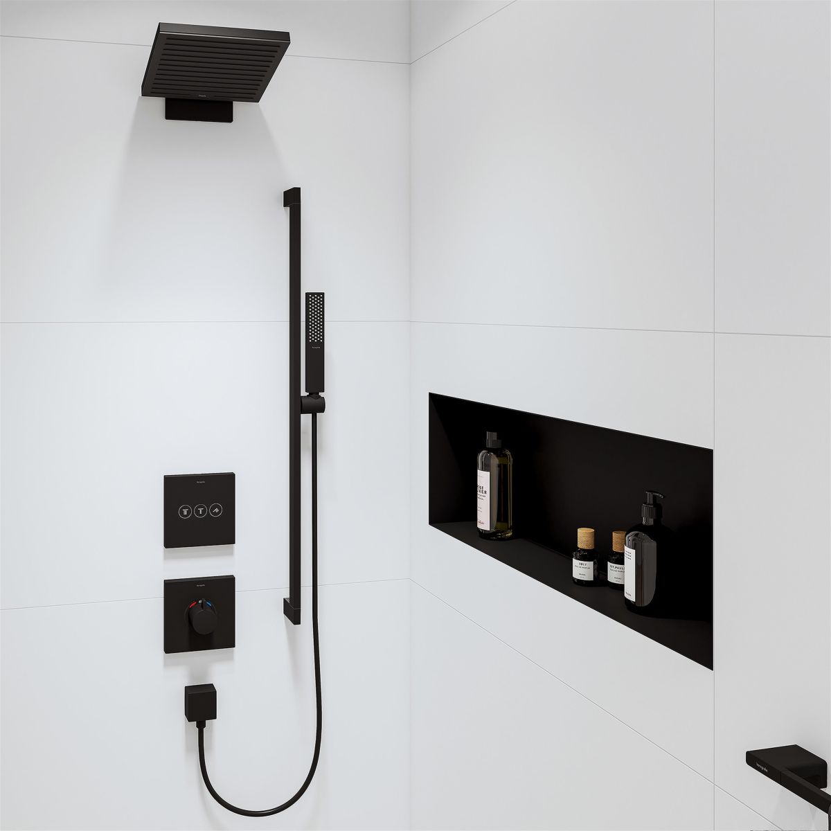 Hansgrohe Pulsify E Kopfbrause mit Arm 26x26 cm quadratisch schwarz 24351670