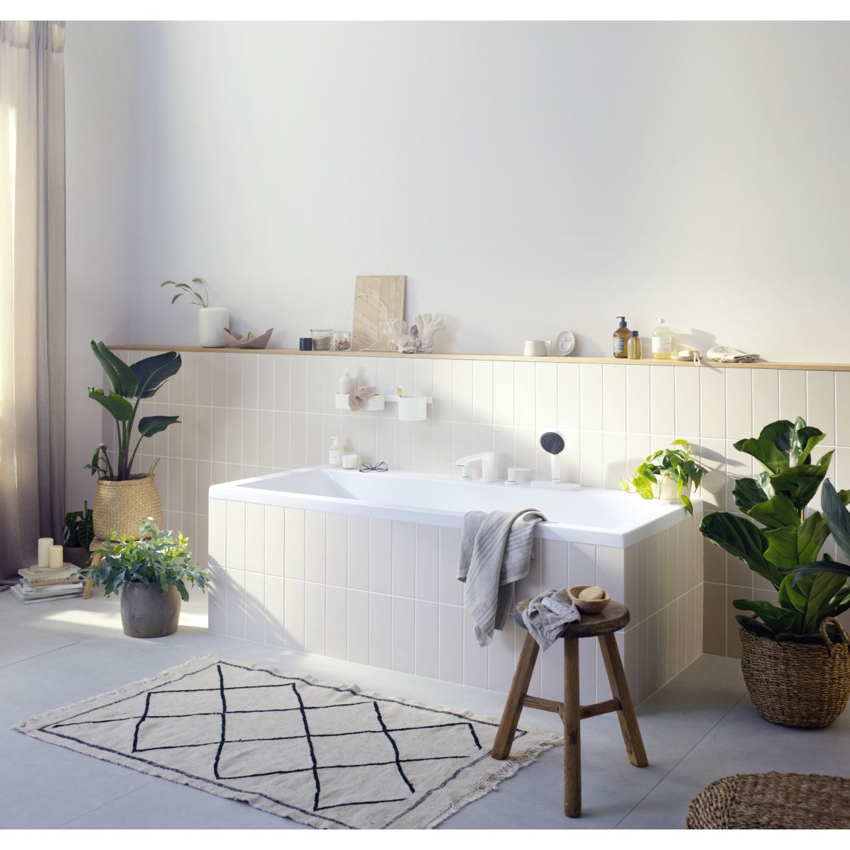 Eine bequeme Möglichkeit, Wasser zu sparen: Pulsify Green Duschkopf in mattweiß mit PowderRain Strahl