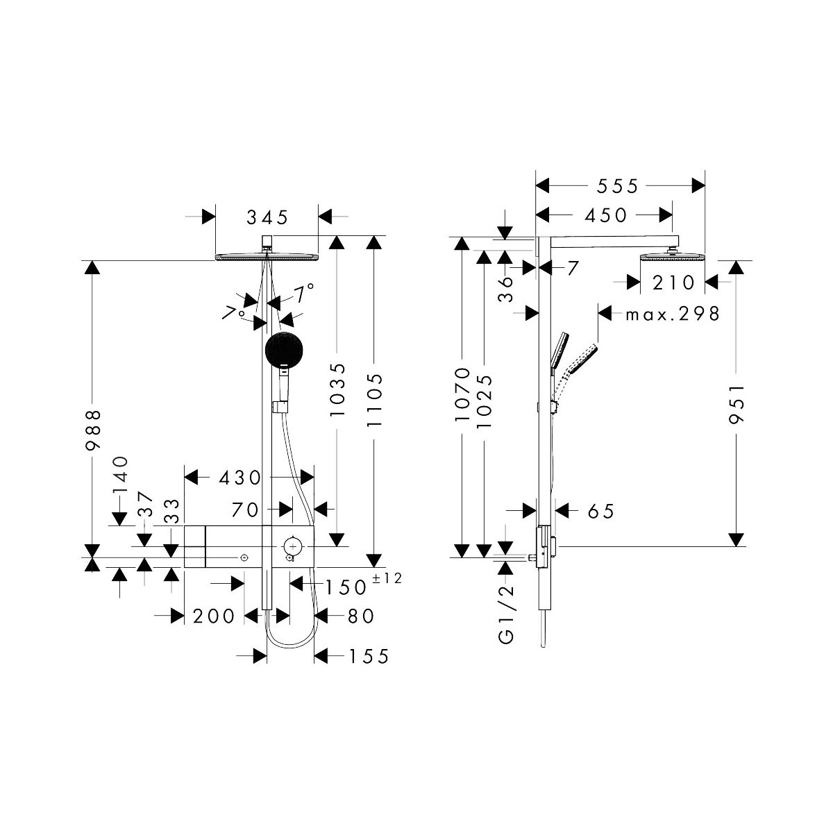 - Kunstvolles Design – einfache Montage: Das hansgrohe Duschsystem wird von außen installiert (Aufputzmontage). Die Wand bleibt unversehrt