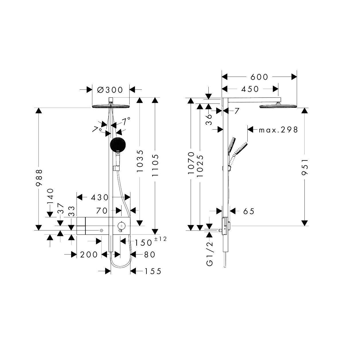 - Kunstvolles Design – einfache Montage: Das hansgrohe Duschsystem wird von außen installiert (Aufputzmontage). Die Wand bleibt unversehrt