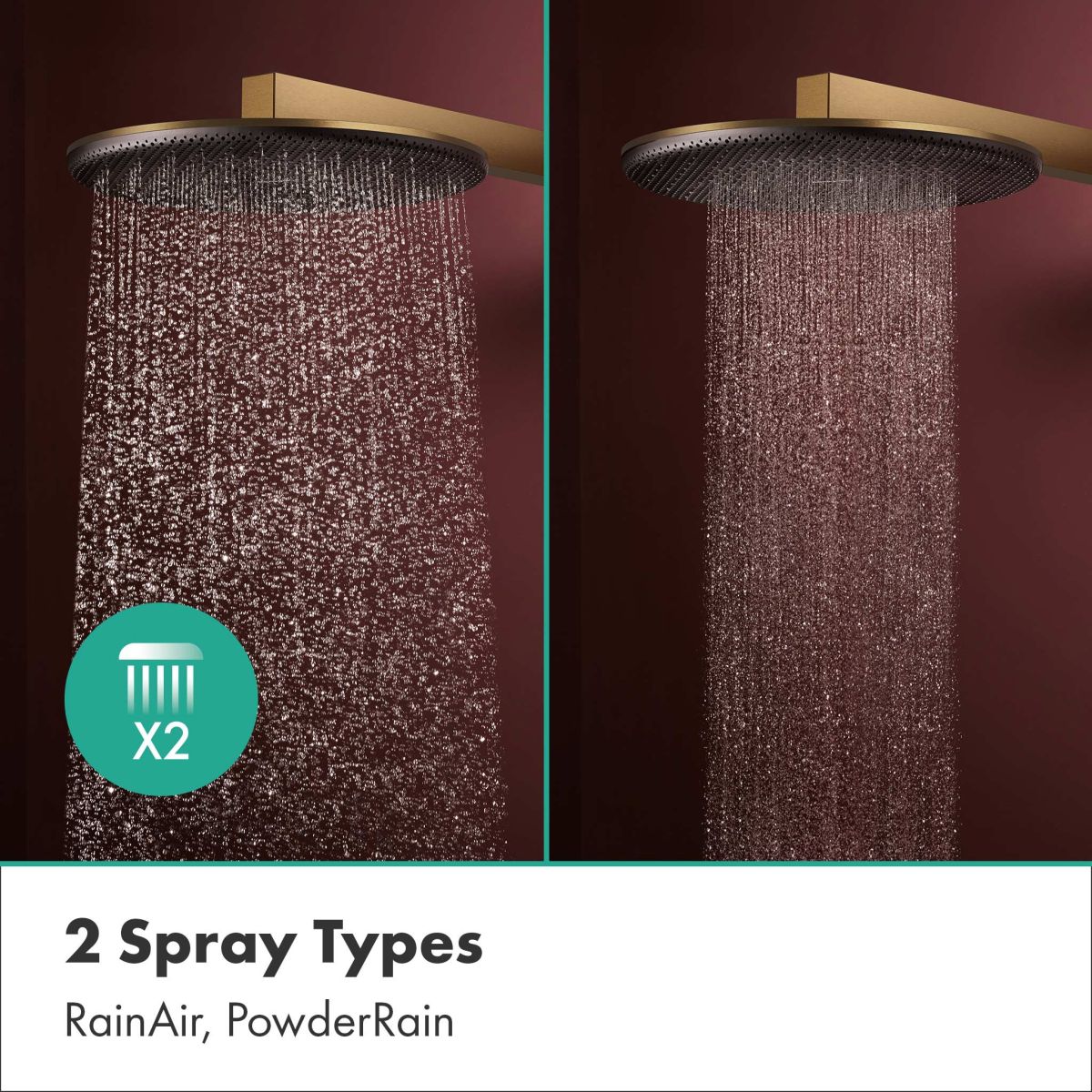 - Vollständiger Sommerregen oder feine Tropfen? Dieser Duschkopf kombiniert erstmals die beiden einzigartigen Strahlarten RainAir und PowderRain von hansgrohe in einem