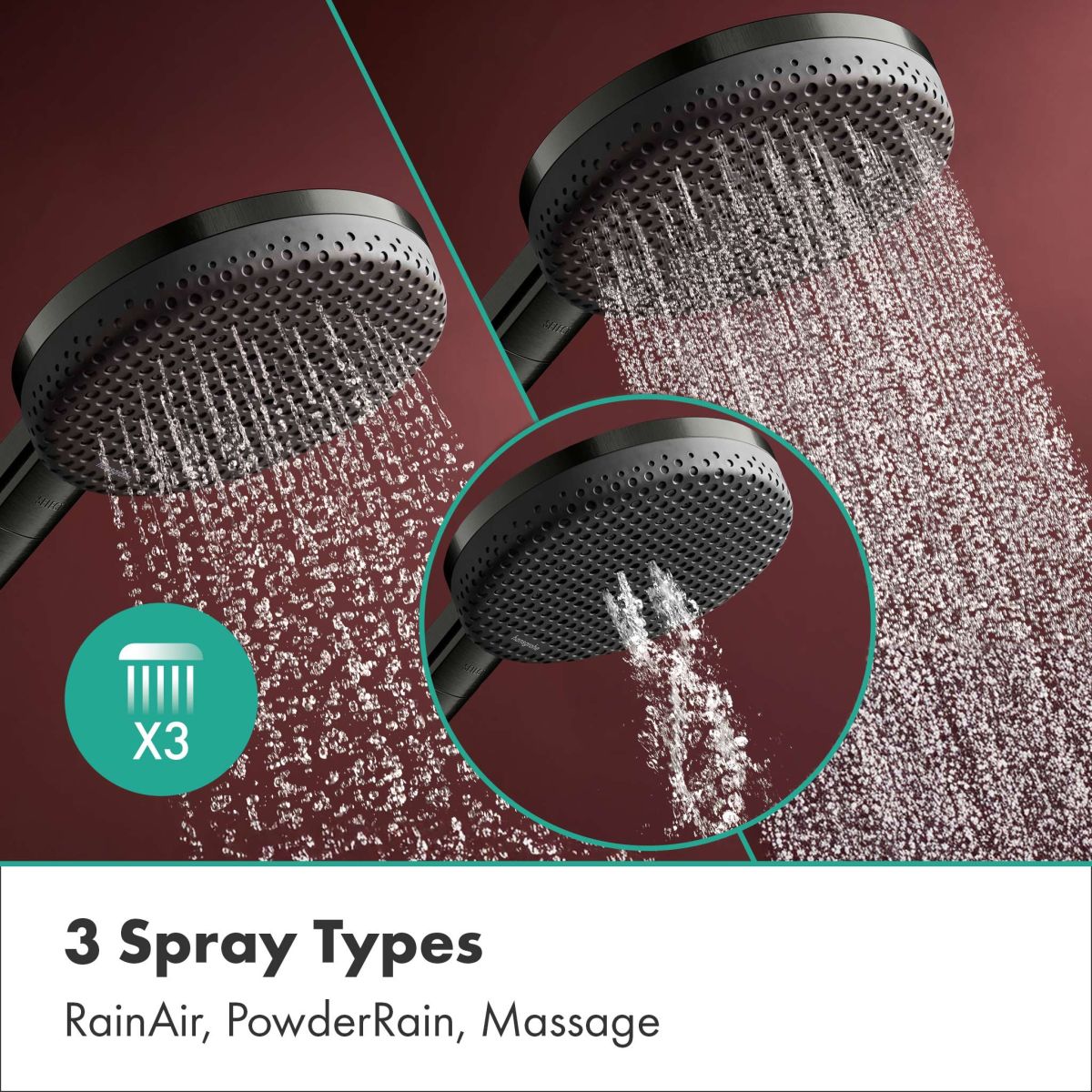 - Strahlart der Duschbrause: RainAir, PowderRain, Massage-Strahl