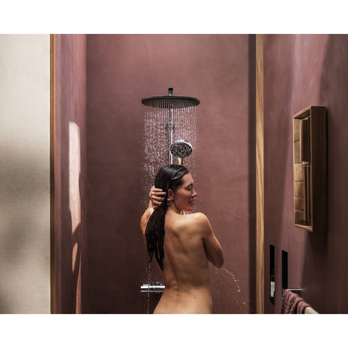 - Kunstvolles Design – einfache Montage: Das hansgrohe Duschsystem wird von außen installiert (Aufputzmontage). Die Wand bleibt unversehrt