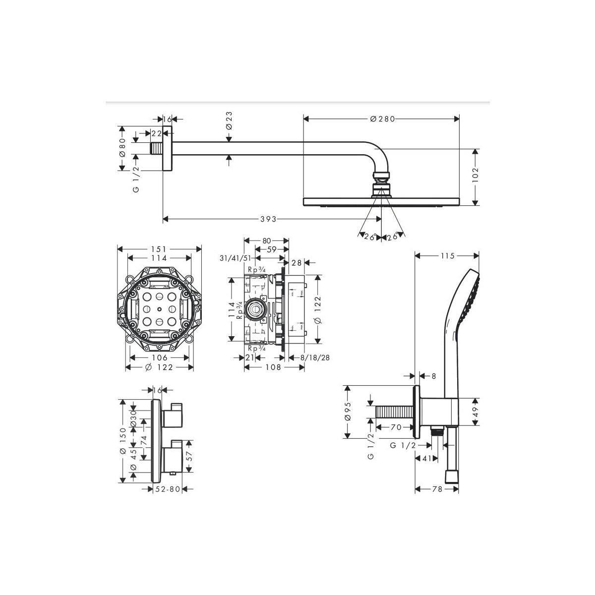 Hansgrohe Raindance Duschset Unterputz mit Thermostat mit Regenbrause chrom 27954000