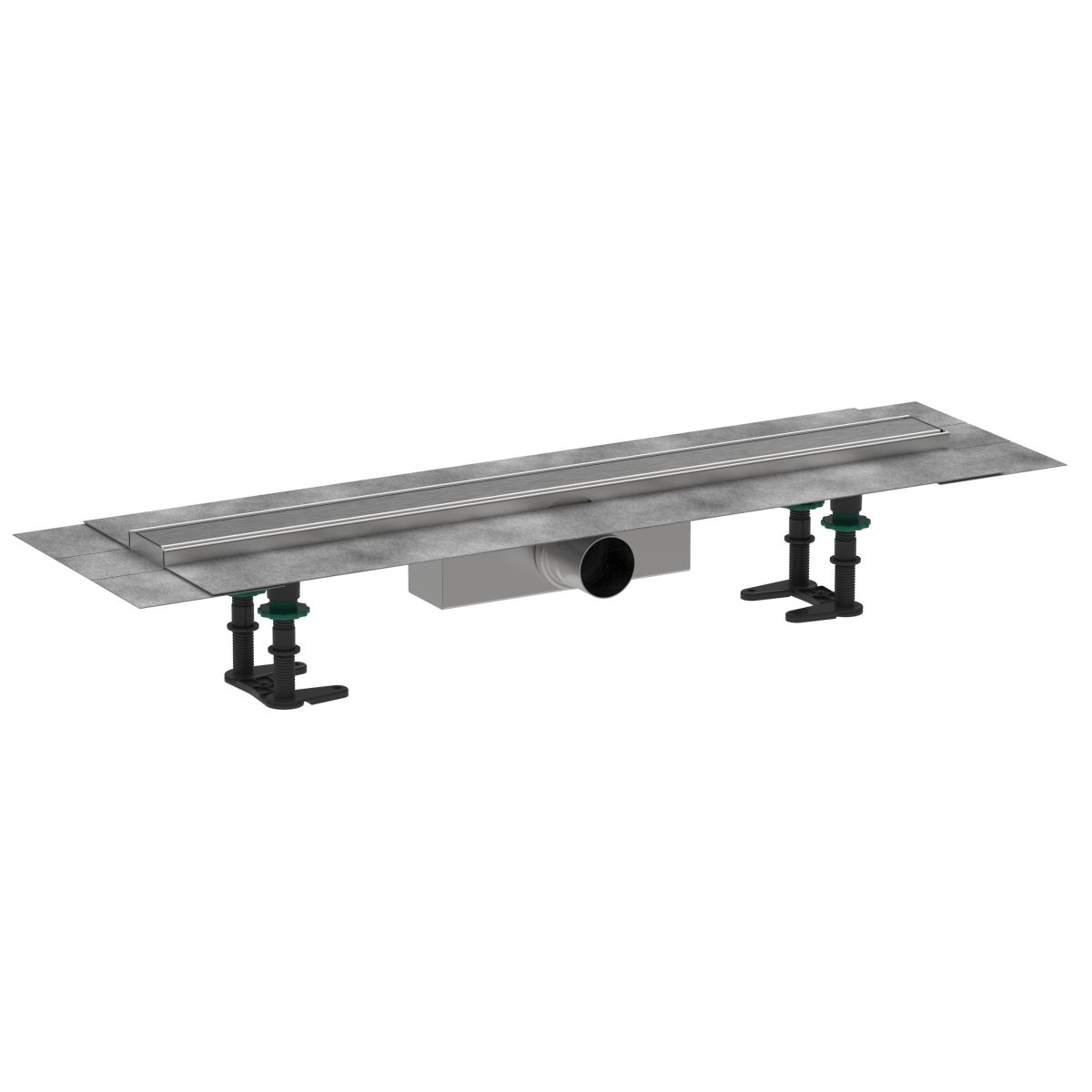 - Besteht aus: Außenelement des Linienablaufs, Installationssätzen, Siphon, Werkzeug zum Ausbau des Rosts, vormontierter Dichtungsmembran