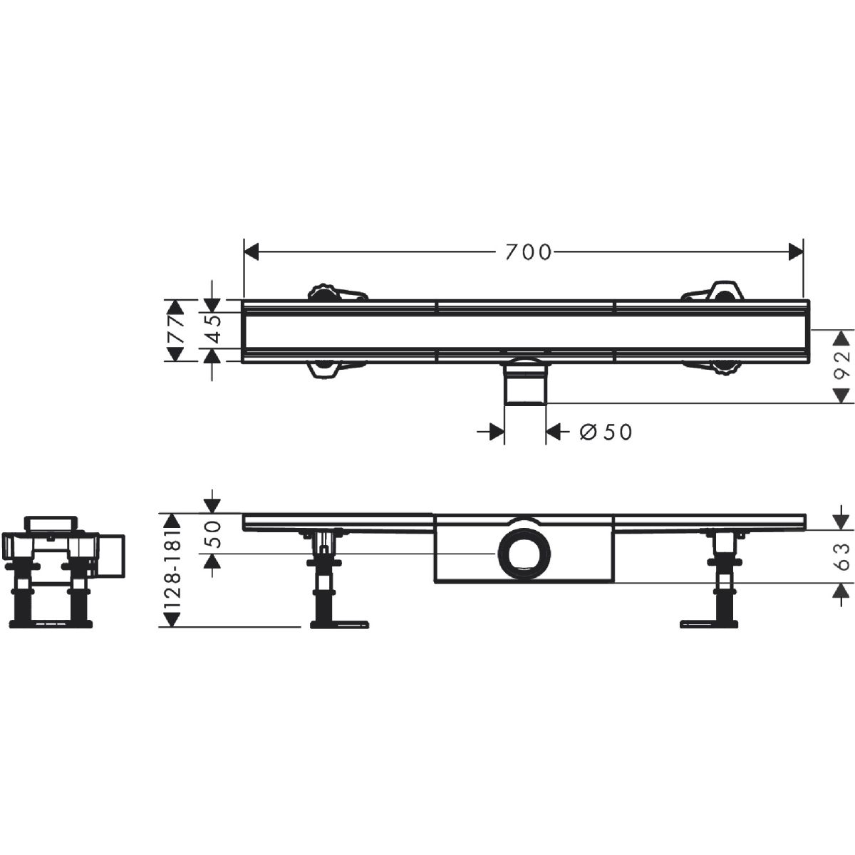 Hansgrohe RainDrain Compact Linearablauf mit Rost 70 cm 56176800