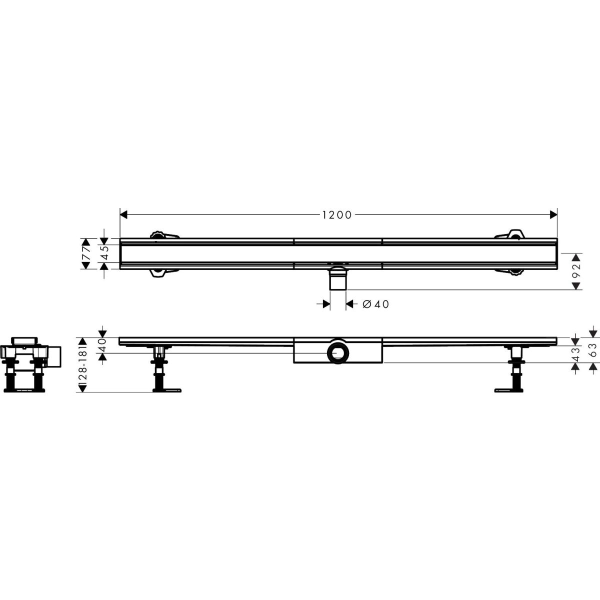 Hansgrohe RainDrain Compact Linienablauf 120 cm stahl 56172800