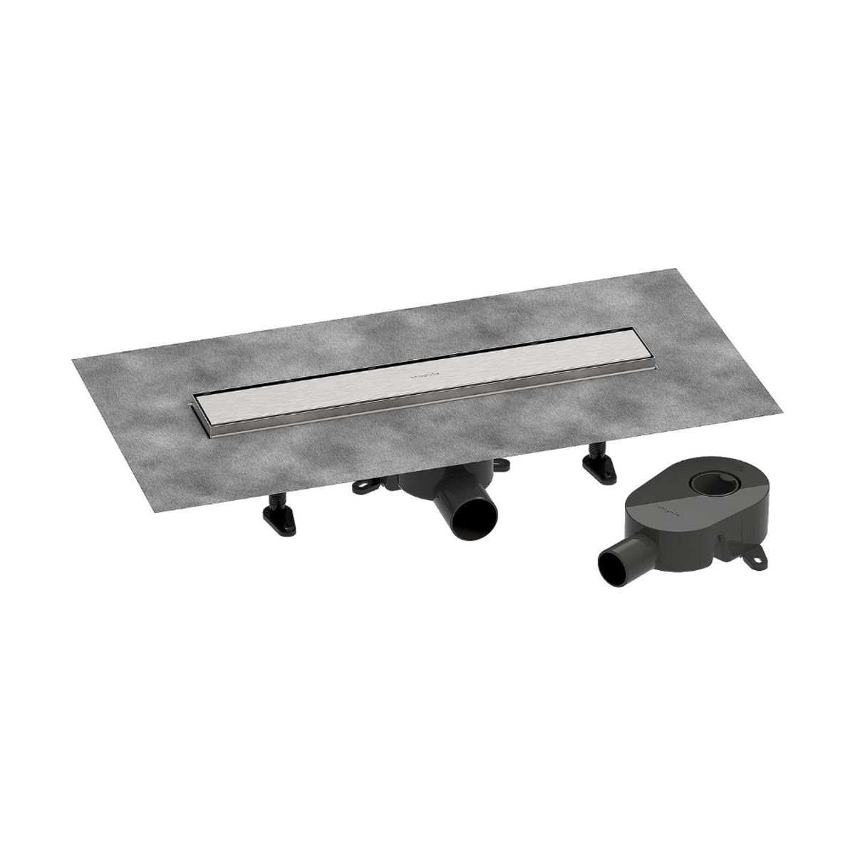 - Bestehend aus: Außenelement des Linienablaufs, Siphons, Installationssätze, vormontierte Dichtungsmembran, Werkzeug zum Ausbau des Rosts, Haarsieb