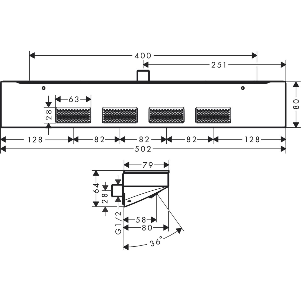 - Größe des Sprühkopfs: 502 x 80 mm