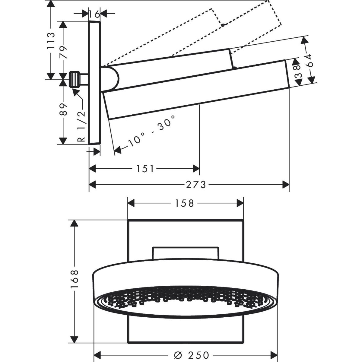 - Größe des Duschkopfs: 250 mm