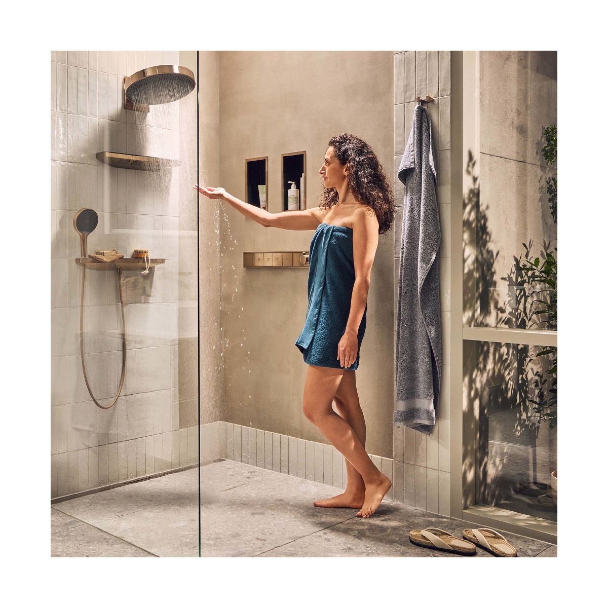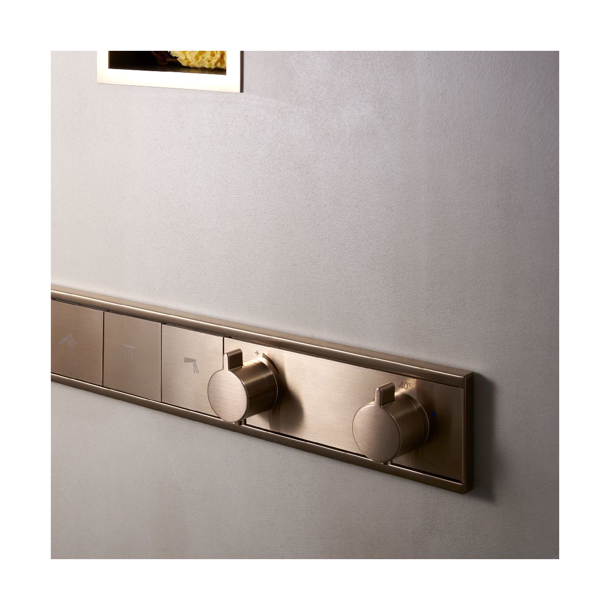 - Die Thermostatarmatur wird mit folgenden Brausen geliefert: Kopfbrause, PowderRain, Schulterbrause