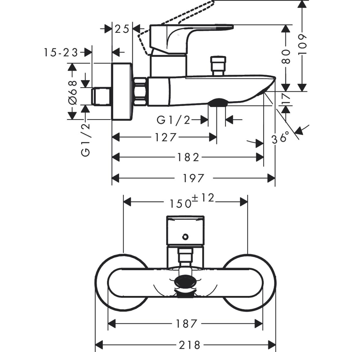 Hansgrohe Rebris E Badewannen- und Duscharmatur Wandmontage schwarz 72450670