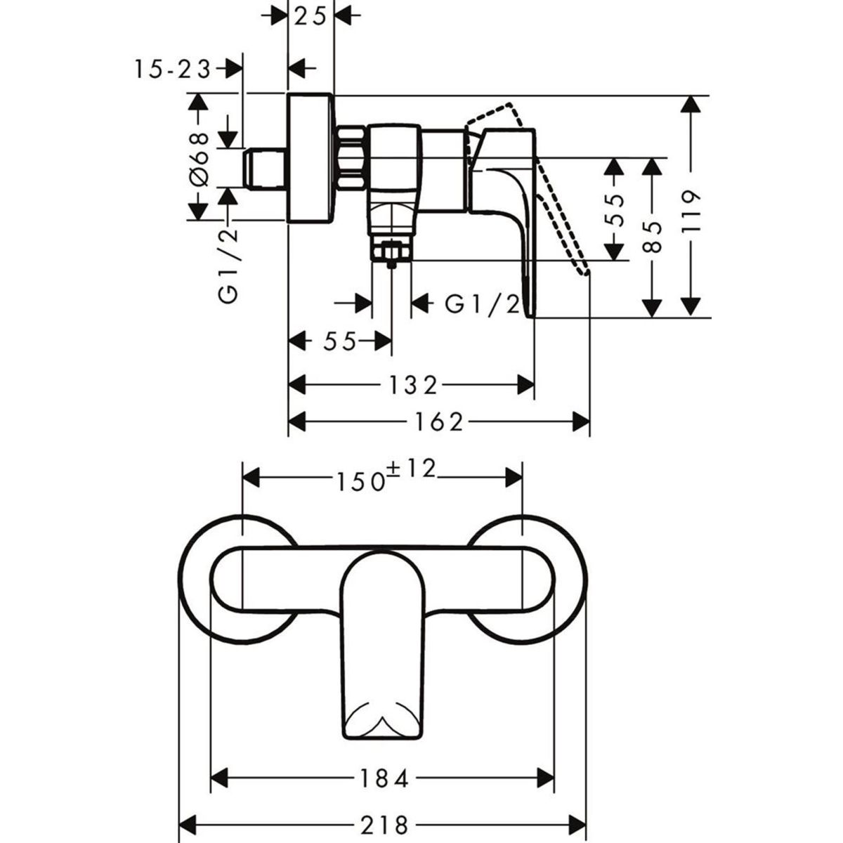Die Aufputzarmatur wird an den vorhandenen Standard-Wasseranschluss geschraubt. Die S-Anschlüsse sind im Lieferumfang der Armatur enthalten. Der Vorteil: Es muss keine Wand aufgebrochen werden. An den Duschschlauchanschluss passt jeder handelsübliche Duschschlauch. Der maximale Durchfluss von bis zu 14,9 l/min (3 bar) versorgt auch große Duschköpfe und bietet damit beste Voraussetzungen für Duschgenuss von hansgrohe.