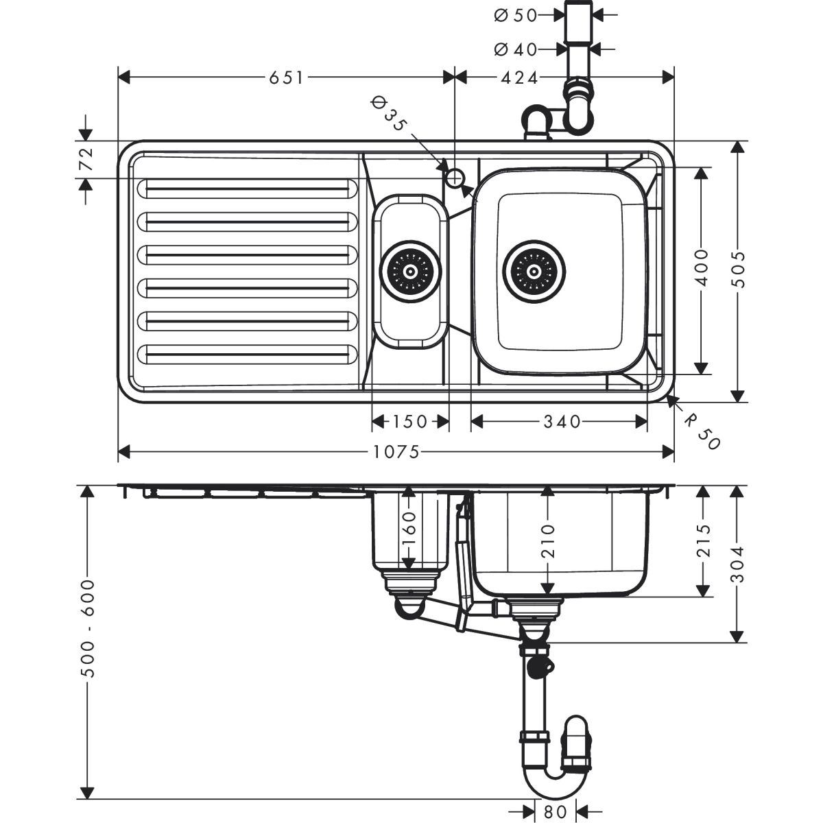 Hansgrohe S41 stahlspüle 107.5x50.5 cm stahl 43342800