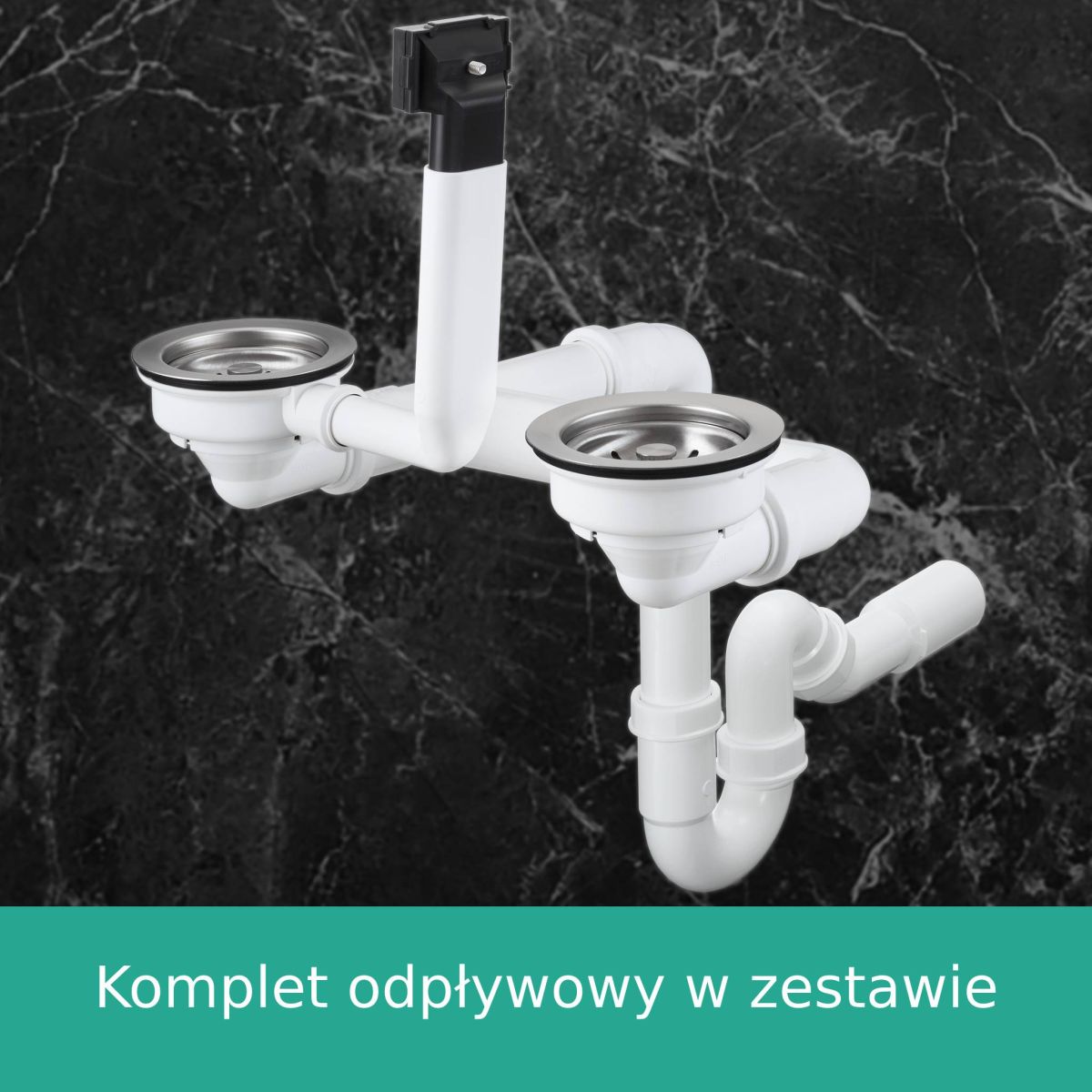 Exklusive Edelstahl-Spüle mit zwei Becken und praktischem Ablaufgarnitur