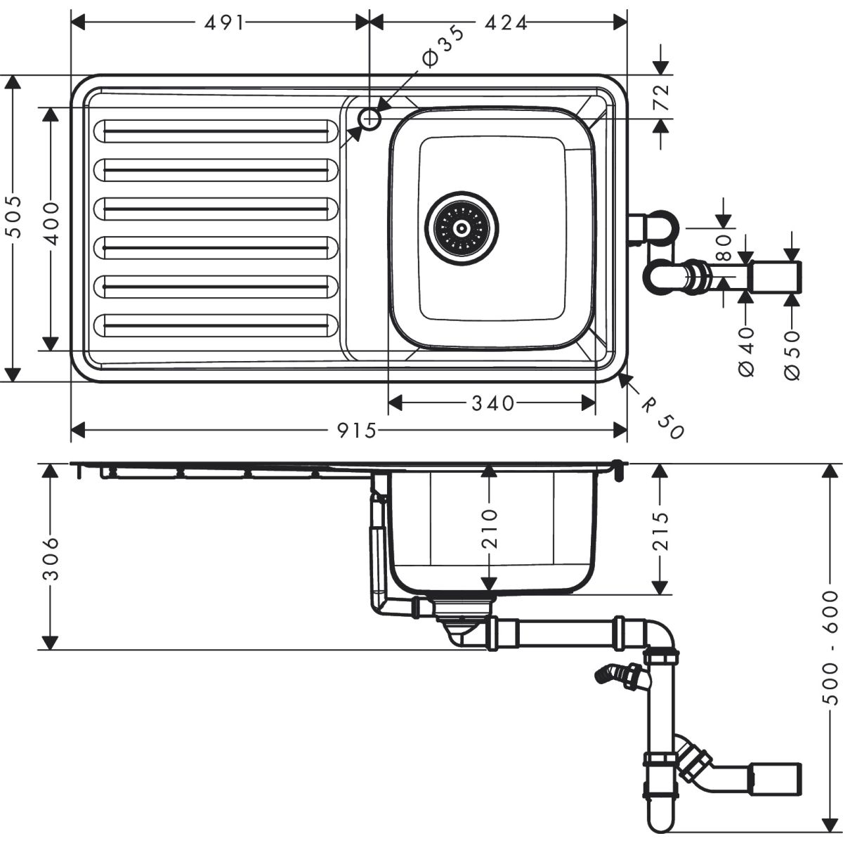 Hansgrohe S41 stahlspüle 91.5x50.5 cm 43340800