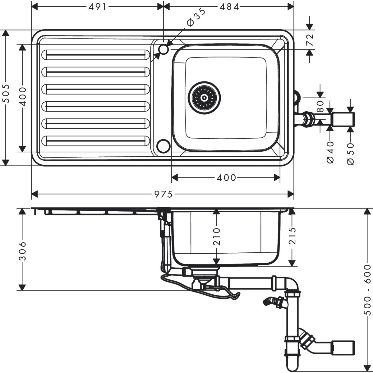 Hansgrohe S41 stahlspüle 97.5x50.5 cm 43338800