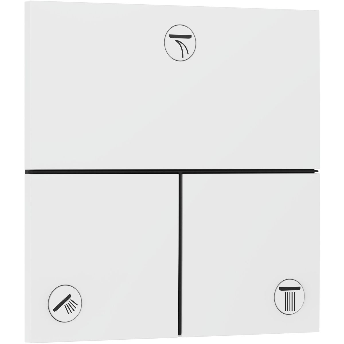 - Das Ventil wird mit folgenden Knöpfen geliefert: Rain klein, Rain groß, Duschkopf, Waterfall und Badewanne