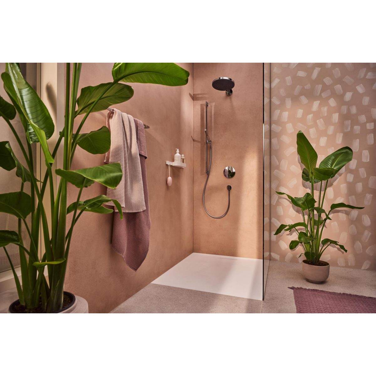 - flache Rosette sorgt für mehr Platz im Duschbereich