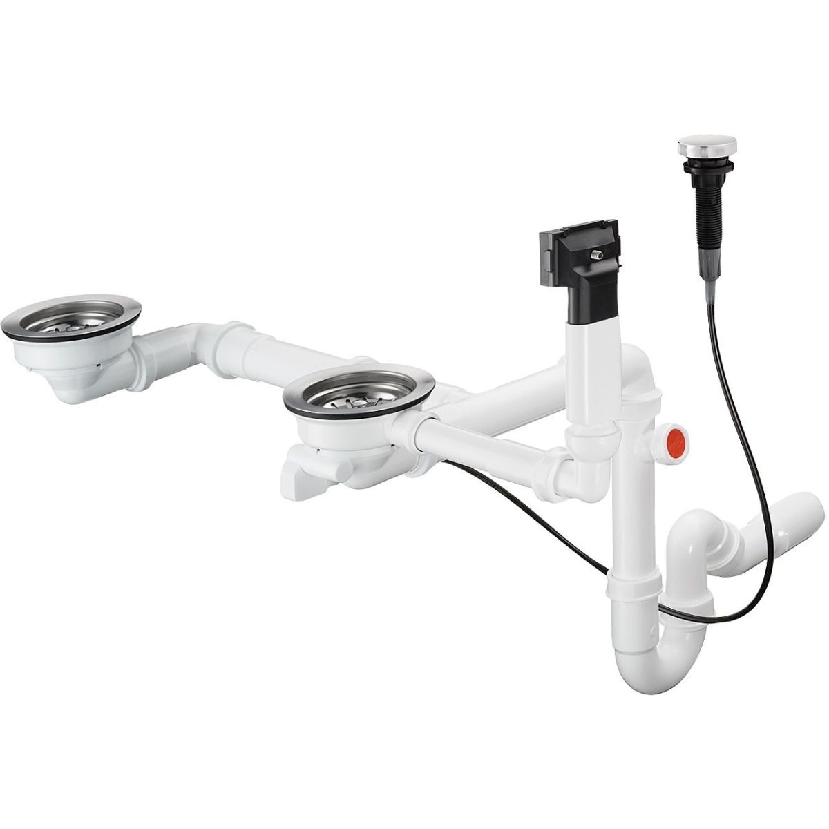 - Besteht aus: Ablaufgarnitur mit Überlauf, Ablaufgarnitur mit Zugstange, Siphon