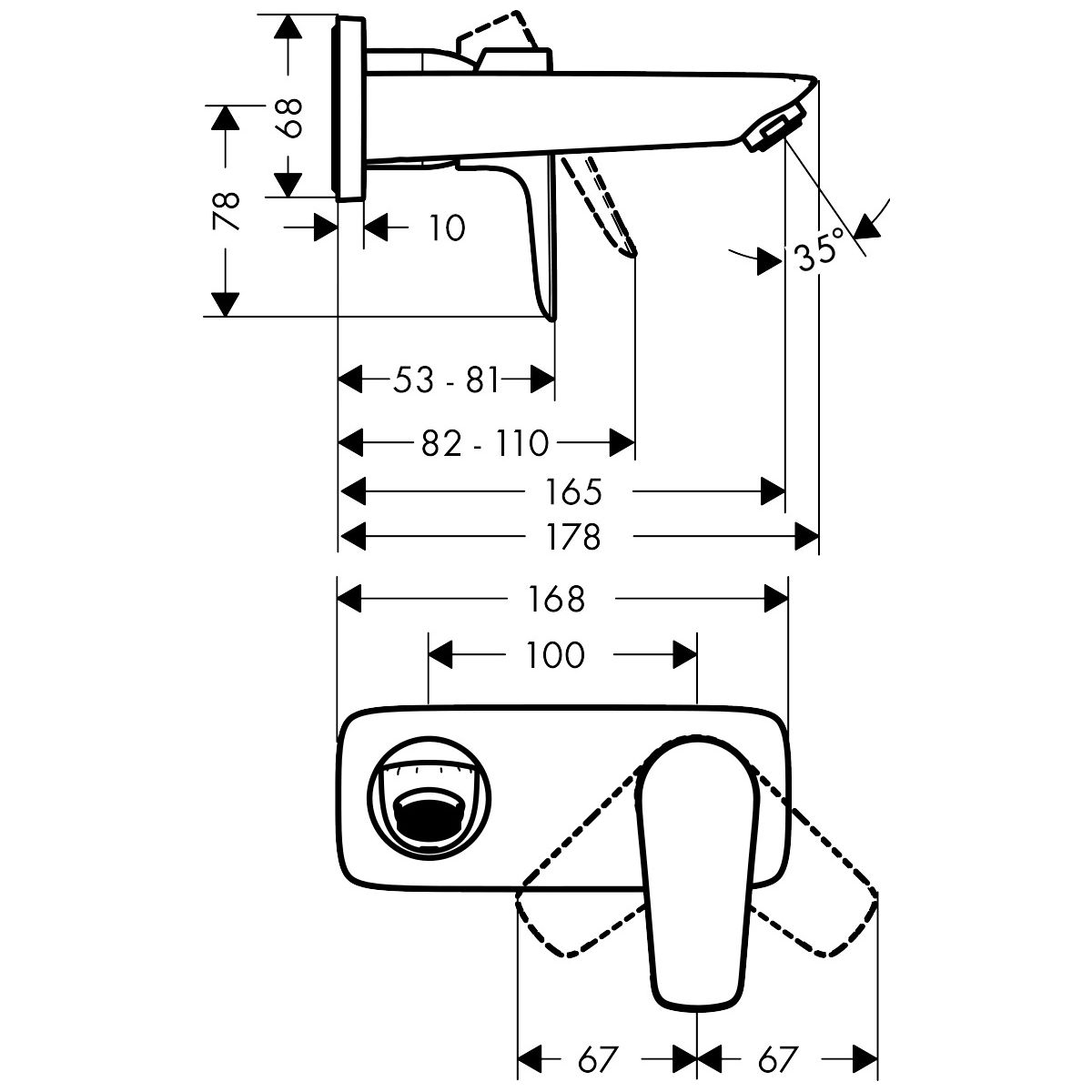 - Länge von der Wand bis zum Perlator 165 mm