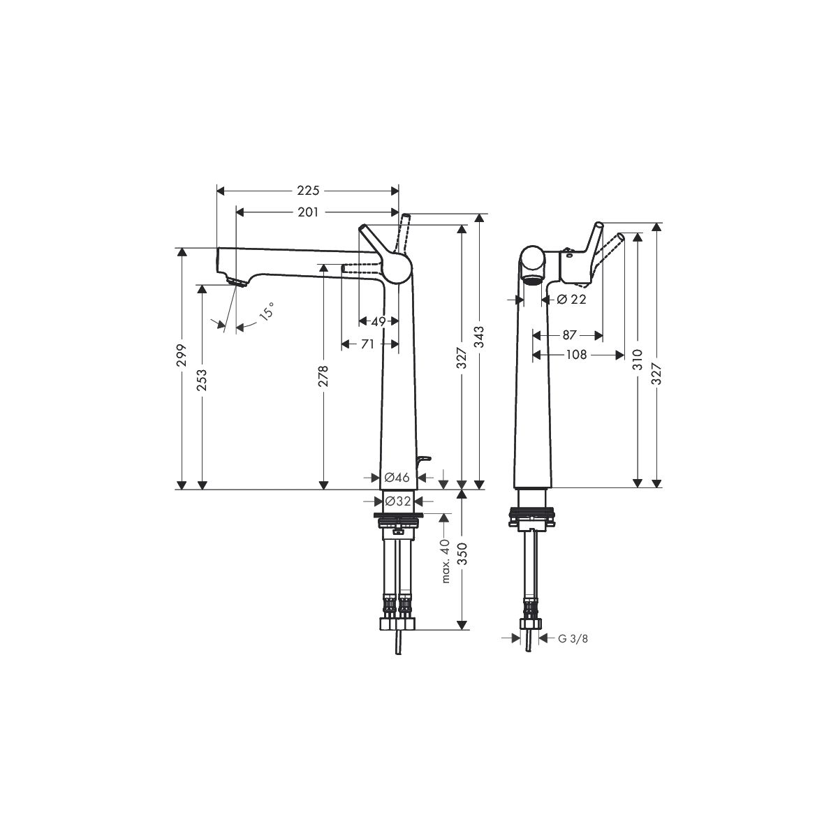 - Auslaufhöhe 201 mm
