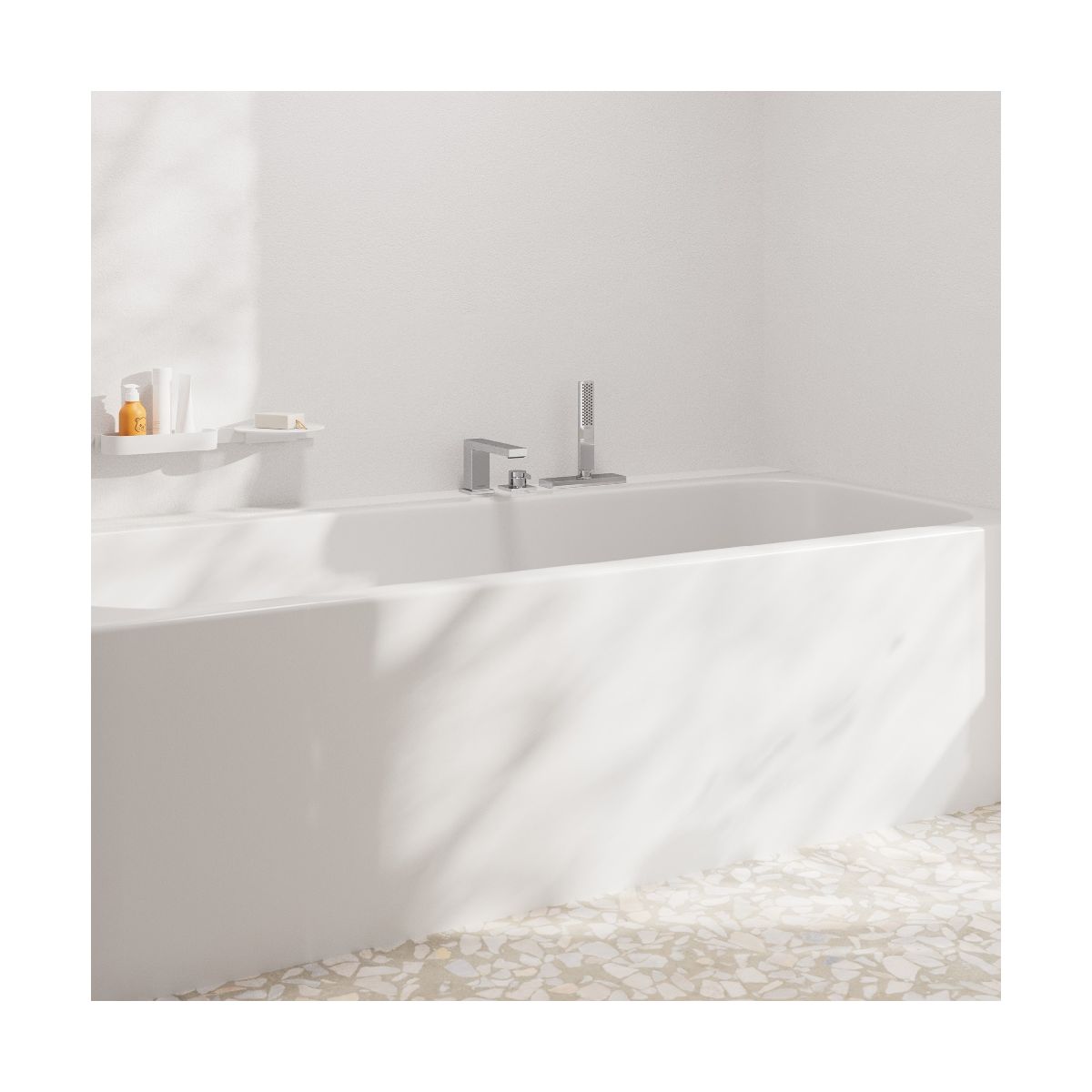 - 3-Loch-Einhebelmischer für die Montage am Wannenrand, Duschkopf, Duschhalter, Duschschlauch, Schlauchführung