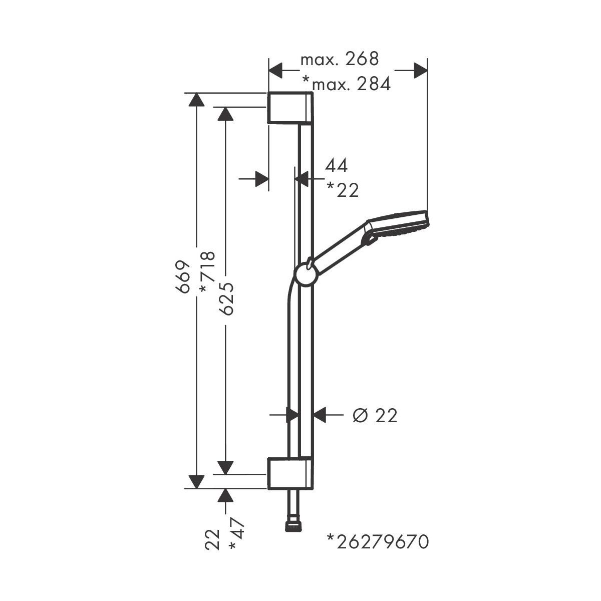 - Gesamtlänge der Duschstange: 669 mm